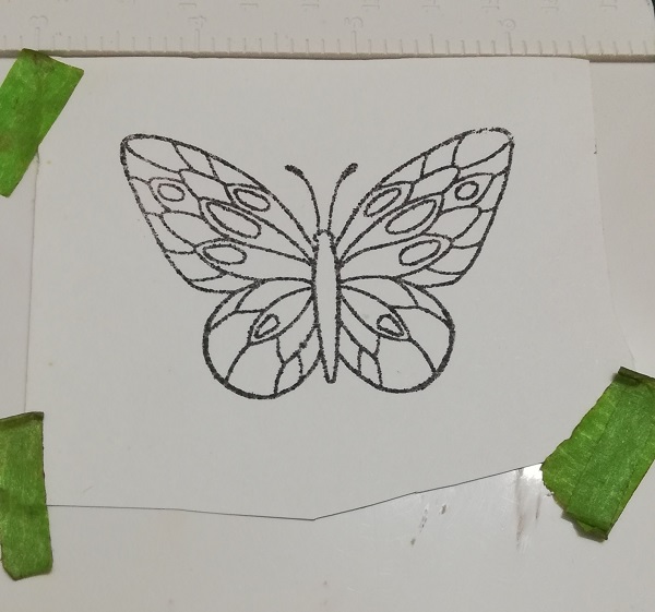 Woodware butterfly stamp, stencil, Stampendous LB Mosaic Butterfly cling stamp (sentiment), Twin Touch markers, floral stencil, distress ink